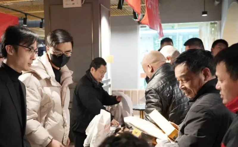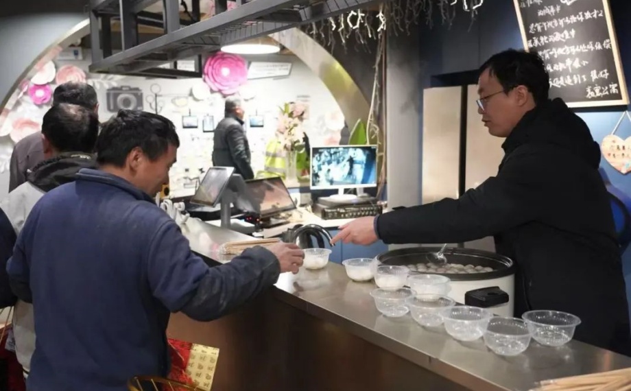 除了法律知識的普及、政策服務的宣傳,活動現(xiàn)場還充滿了濃濃的節(jié)日氛圍。商務區(qū)黨工委為參與活動的集宿區(qū)員工與建筑工人送上熱氣騰騰的湯圓,并將法治元素、黨建元素融入元宵祝福中。湯圓雖小,卻承載著滿滿的溫暖與關懷,讓這個元宵節(jié)變得格外暖心。此外,商務區(qū)兩新工委準備了傳統(tǒng)冰糖葫蘆,“一串紅果送甜蜜,情暖工友慶元宵”,讓工人朋友在節(jié)日里感受到甜蜜與溫暖。