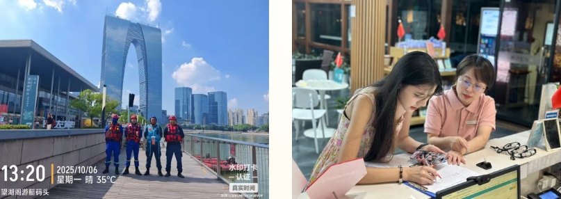 雙節(jié)假期,金雞湖景區(qū)游客中心和碼頭增加了“小水滴志愿者”,為市民游客提供引導和幫助。景區(qū)管理中心聯(lián)合屬地企業(yè)、景區(qū)執(zhí)法部門、應(yīng)急救援等22家單位,強化值班值守制度,及時處理各類涉旅問題,不斷提升游客體驗感、滿意度。環(huán)湖各碼頭、文化場所、游客中心、驛站、摩天輪等相關(guān)載體工作人員堅守一線窗口,以微笑服務(wù)迎接每一位市民游客。藍天救援隊每日水上巡防、各屬地一線安保人員齊齊在崗,為市民游客中心營造了安心、舒心的假日環(huán)境。