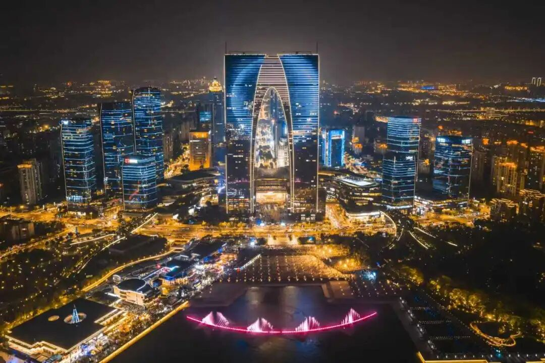 光影盛宴,同慶華誕。圍繞中秋和國慶主題,融入“數(shù)字孿生”等先進技術(shù),金雞湖音樂噴泉和環(huán)湖樓宇帶來了特別的燈光秀。東方之門特別呈現(xiàn)“繡姑蘇、共此時、躍龍門”三大篇章的燈光秀,以天為幕、以光為筆,繪就波瀾壯闊的時代畫卷,將節(jié)日氛圍推向了高潮。