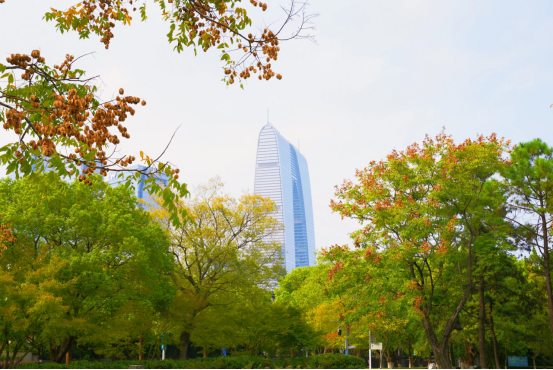 盡日苔階閑不掃滿園銀杏落秋風銀杏則是秋日里期待的另一抹亮色待一簇簇金黃扇葉綴滿枝頭,自然勾勒出天然畫框,恰好將遠處的城市地標框進這幅秋景圖中。