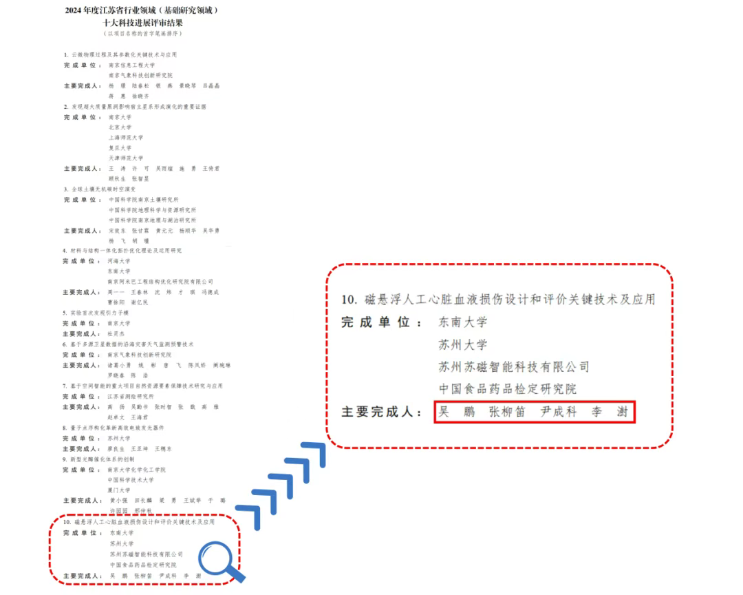 “磁懸浮人工心臟血液損傷設(shè)計(jì)和評價(jià)關(guān)鍵技術(shù)及應(yīng)用”項(xiàng)目由東南大學(xué)、蘇州大學(xué)、蘇磁科技與中國食品藥品檢定研究院聯(lián)合攻關(guān),解決了人工心臟血液損傷難以量化評估的技術(shù)瓶頸,體現(xiàn)了我國在高端醫(yī)療裝備核心技術(shù)領(lǐng)域的自主創(chuàng)新實(shí)力,充分彰顯了產(chǎn)學(xué)研協(xié)同創(chuàng)新的成效。