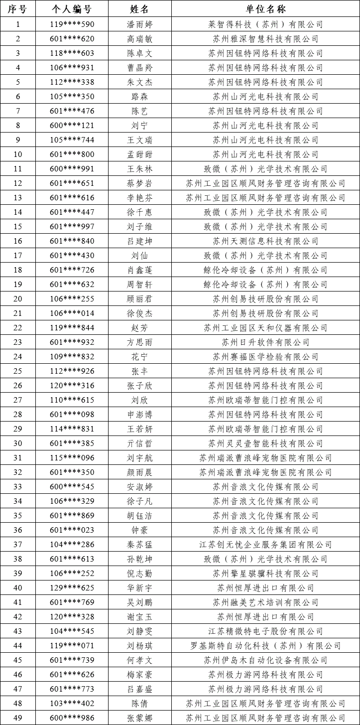 2025年11月小微企業吸納高校畢業生社保補貼新增符合人員公示名單