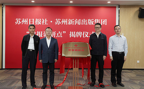 蘇州日報社黨委書記、社長,蘇州新聞出版集團(tuán)有限公司董事長李勇,蘇州工業(yè)園區(qū)黨工委委員、管委會副主任、宣傳和統(tǒng)戰(zhàn)部部長朱江,蘇州工業(yè)園區(qū)宣傳和統(tǒng)戰(zhàn)部副部長、文體旅游局局長殷衛(wèi)東,蘇州獨墅湖科教創(chuàng)新區(qū)黨工委書記許文清,蘇州日報社黨委委員、副總編輯高巖,蘇州工業(yè)園區(qū)宣傳和統(tǒng)戰(zhàn)部副部長張蓁,蘇州工業(yè)園區(qū)斜塘街道黨工委副書記、辦事處主任楊淑瑾出席揭牌儀式。活動邀請了蘇州市政府研究室科研處處長成濤林,國家智庫·南京大學(xué)長江產(chǎn)業(yè)經(jīng)濟(jì)研究院特聘研究員,蘇州科技大學(xué)教授徐天舒參與調(diào)研。