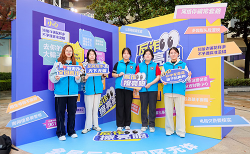 高校學生代表為到場觀眾帶來原創朗誦《反詐的交響》、原創反詐情景劇《我要投訴你》、原創反詐主題說唱歌曲《??!我的錢》等演出作品,以行動詮釋反詐意識、展現陽光校園。