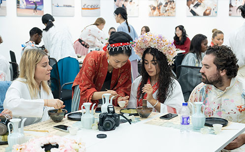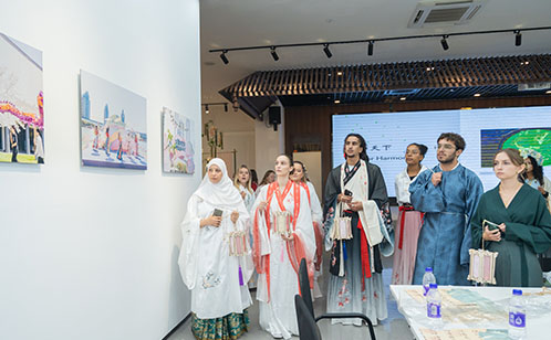 現場,“未來顯影——獨墅湖畔的文化底片”主題展覽拉開序幕。展覽集中呈現了科教創新區歷年文化活動的精彩瞬間,并創新性地以四季色系為脈絡,打造二十四節氣傳統文化展區。春櫻粉、夏荷碧、秋杏金、冬湖藍四個色區對應著不同季節的文化活動與傳統技藝。中外學子們身著漢服漫步其間,在移步換景中感受獨墅湖四季流轉的文化魅力,體驗傳統文化與現代科教融合的獨特韻味。