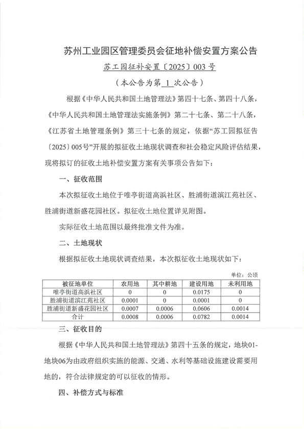 蘇州工業(yè)園區(qū)2025年度第6批次城市建設(shè)用地--蘇州工業(yè)園區(qū)管理委員會征地補償安置方案公告(蘇工園征補安置〔2025〕003號)