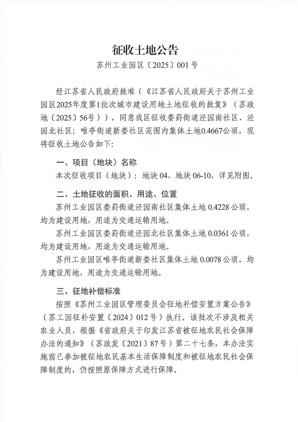 蘇州工業園區2025年度第1批次城市建設用地-征收公告