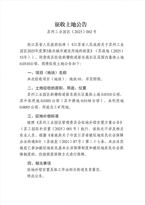 蘇州工業園區2025年度第5批次城市建設用地-征收公告