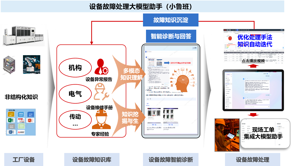除了生產環節,AI也成為設備運維的“先知”。工廠自主研發的設備預測性維護體系,能夠對全廠數百臺核心機械手臂的扭矩、溫度、震動等多維度實時數據進行分析,提前72小時精準預測95%以上的潛在故障。同時,公司自研的設備故障大模型助手“小魯班”深度學習海量歷史維修經驗,當設備出現異常時,能為工程師實時推送最優復機對策,推動運維模式從“被動維修”向“主動預見”升級,顯著提升設備穩定性與生產效率。