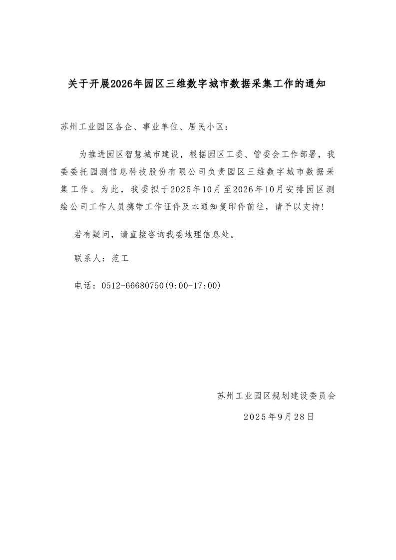 關于開展2026年園區三維數字城市數據采集工作的通知