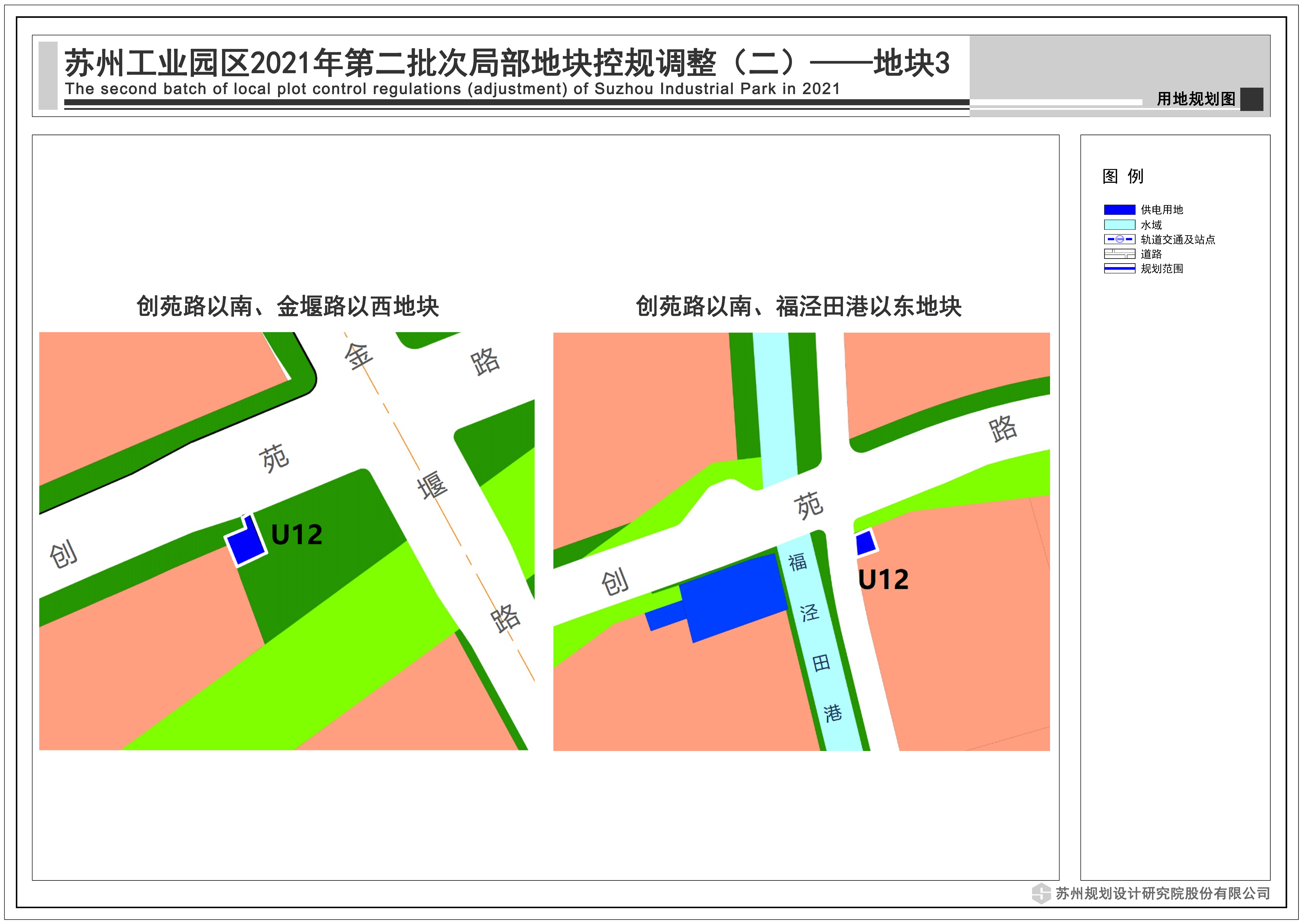 創苑路以南、福涇田港以東地塊:根據創苑路架空線入地項目需要,新建公共開閉所。將原規劃工業(研發)用地調整為供電用地,設置標準開閉所。