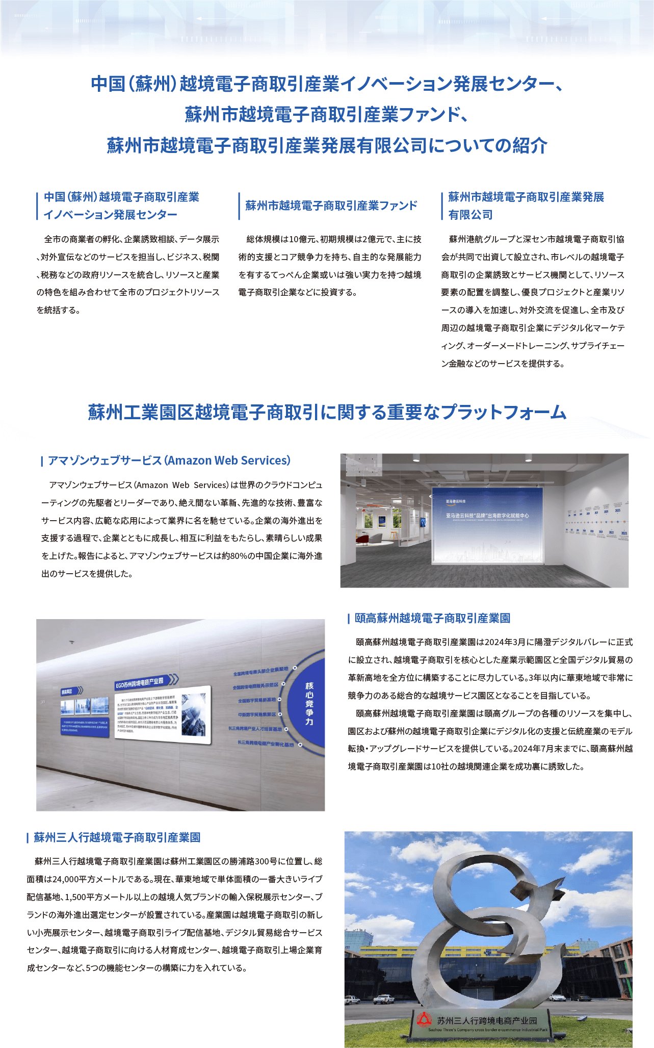 8月20日、蘇州市越境電子商取引「八つの一」推進(jìn)會(huì)並び蘇州工業(yè)園區(qū)越境電子商取引発展會(huì)議が陽(yáng)澄デジタルバレー?南岸新地で開催された。中國(guó)(蘇州)越境電子商取引産業(yè)イノベーション発展センター、蘇州市越境電子商取引産業(yè)発展有限公司、蘇州市越境電子商取引産業(yè)ファンドが正式に設(shè)立され、開業(yè)した。 イベントの現(xiàn)場(chǎng)では、蘇州市越境電子商取引「八つの一」プロジェクトの始動(dòng)式が行われた。「八つの一」プロジェクトは蘇州市委員會(huì)、蘇州市政府が越境電子商取引に関する総合的なサービス體系を完備させ、良好な産業(yè)生態(tài)を構(gòu)築するための重要な措置である。 會(huì)議では、企業(yè)に商品展示や便利な越境申告などの公益サービスを提供する蘇州工業(yè)園區(qū)越境電子商取引サービスプラットフォームが発表された。 現(xiàn)場(chǎng)では、蘇州工業(yè)園區(qū)越境電子商取引産業(yè)企業(yè)誘致プロジェクトの調(diào)印式が行われた。また、越境電子商取引業(yè)界の代表企業(yè)を招き、それぞれテーマ共有を行った。 蘇州工業(yè)園區(qū)越境電子商取引人材誘致シーズンの正式なスタートに伴い、一連の公益の越境電子商取引人材就職説明會(huì)、人材交流活動(dòng)が全國(guó)...