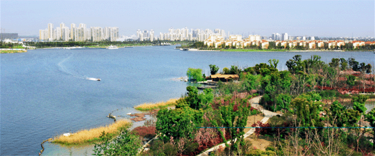 金鶏湖地域の総面積は約12平方キロであり、その內(nèi)湖面面積は約7平方キロある。金鶏湖を中心とした湖浜大道、李公堤、水巷隣里等の湖岸景観の及び湖に浮かぶ島の景観と結(jié)び合い、この地域を商業(yè)、観光、水上スボーツ、レジャー、飲食を一體化としたウォーターフロントビジネスエリアに発展させる。