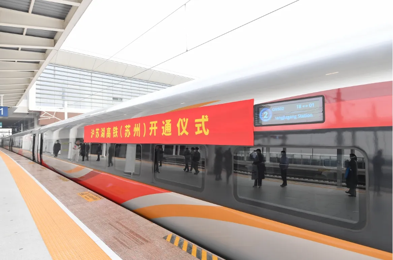 12月26日、滬蘇湖高速鉄道が開通?運(yùn)営し、蘇州南駅と盛澤駅が正式に使用を開始した。