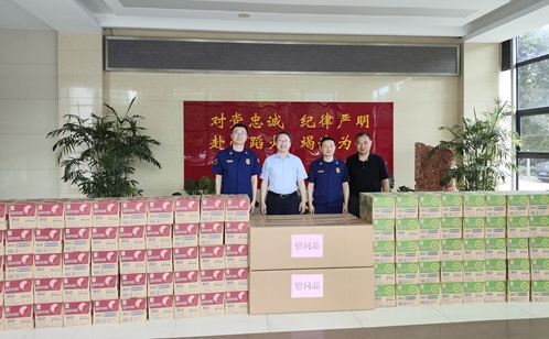 慰問(wèn)組來(lái)到園區(qū)消防救援大隊(duì),為消防救援人員送去清涼飲品和防暑物資,囑咐大家在保障人民安全的同時(shí),也要注意自身的健康與安全。