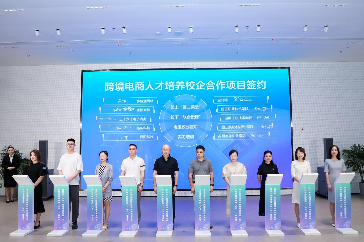 現(xiàn)場(chǎng),蘇州亞馬遜云科技品牌出海數(shù)字化賦能中心、蘇州頤高跨境電商產(chǎn)業(yè)園、三人行保稅進(jìn)口展示中心三家園區(qū)跨境電商重點(diǎn)平臺(tái)項(xiàng)目正式啟用;6家企業(yè)與4所高校簽署了跨境電商人才培養(yǎng)校企合作項(xiàng)目;多個(gè)園區(qū)跨境電商產(chǎn)業(yè)招商項(xiàng)目簽約。