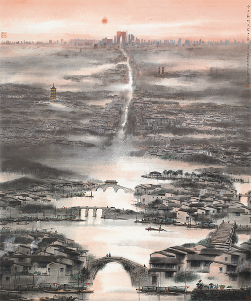 楊明義是蘇州籍畫家,他在80歲高齡創(chuàng)作的水墨作品《今日蘇州人間天堂》在此次展覽中亮相。該作品由近及遠,描繪出蘇州古今不同的時代風貌——既有小橋流水、古塔園林,也有蘇州工業(yè)園區(qū)的繁華盛景,體現(xiàn)了江南水鄉(xiāng)的發(fā)展變遷。“我去過新加坡,也因為藝術(shù)的淵源,對新加坡有著深厚的感情。藝術(shù)需要交流,通過一次次互動,相信未來中新文化合作必將結(jié)出更加豐碩的成果。”楊明義說。