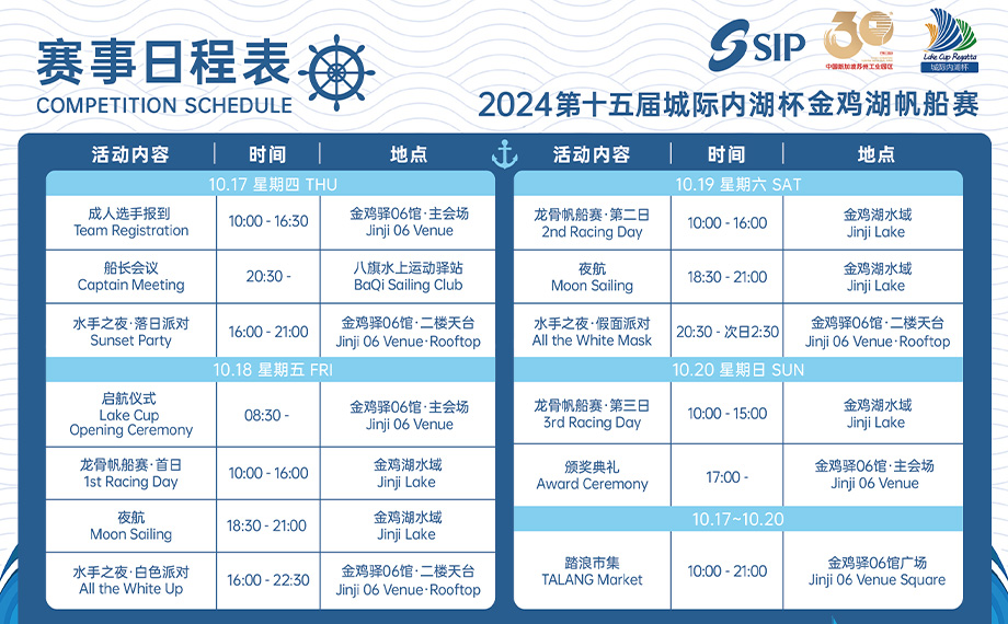 賽事啟航儀式首次在新開放的金雞驛06館舉辦,依托絕佳打卡觀賽位,給參賽選手及觀賽者帶來全新體驗。為普及帆船文化,帶動更多市民參與體驗帆船,組委會在賽事前后策劃發(fā)起系列公益專場,為市民、游客提供專屬帆船體驗項目。比賽期間,組委會還將繼續(xù)舉辦夜航體驗活動,讓夜燈閃爍的帆船持續(xù)點“靚”金雞湖,為城市創(chuàng)造夜晚的獨特氛圍。