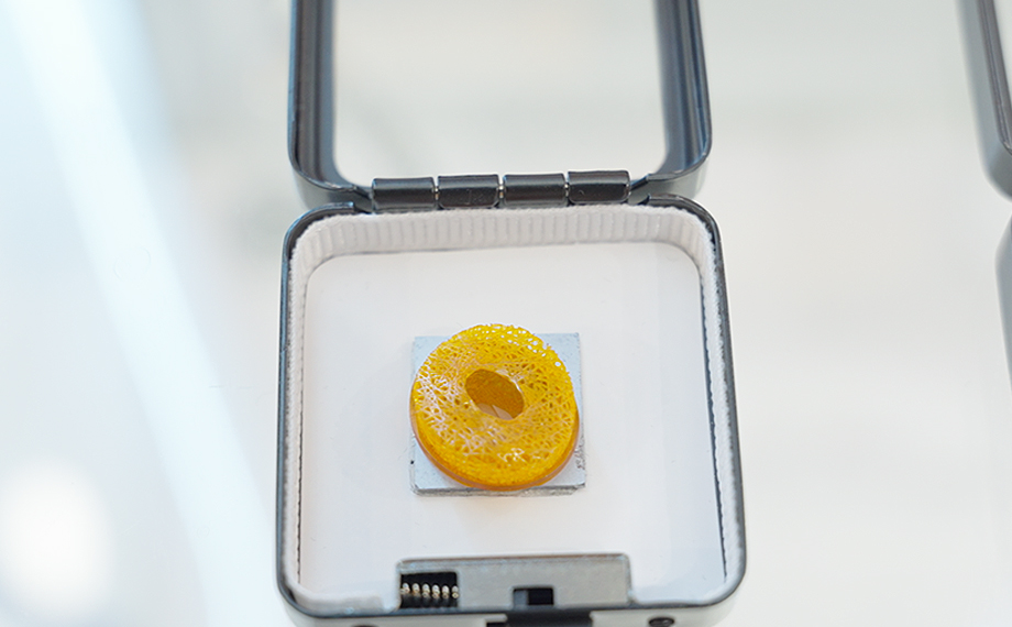 展臺中,一塊小小的陶瓷超材料模型玲瓏剔透,而其內部則是肉眼無法觀察的蜂窩狀結構?!霸谖⒓{應用下,我們可以模擬展現一些新材料的結構特性,從而助力新材料的研發。目前,公司與多家客戶達成了合作,可以輔助實現一些全新課題的研發。譬如這款陶瓷超材料的結構打印,就為不同結構的新材料研發提供了新的可能性?!敝芏Y俊說。