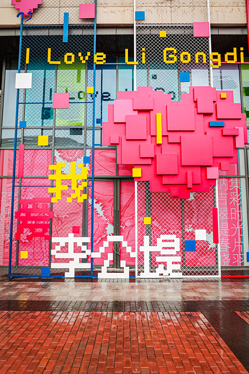 中法文化藝術周期間,市民游客來李公堤逛一逛,必定會收獲一番驚喜。在李公堤文創街區,“愛的回響——中法裝置藝術展”隨機展示著藝術的魅力——綻放的粉色郁金香、以類馬賽克形式打造的愛心藝術墻、“心花怒放”主題裝置……六位中法藝術家各展其才,運用裝置藝術媒介,創作出各具藝術表達的作品,呈現一場跨越國界與文化的視覺盛宴。