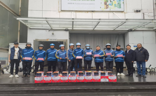 慰問現場,工作人員送上飽含情誼的慰問信,帶來牛奶、泡面、春聯、福字等生活必需品,向春節留蘇堅守崗位的騎手送上體檢優惠券和園林參觀券,預祝大家新春快樂。