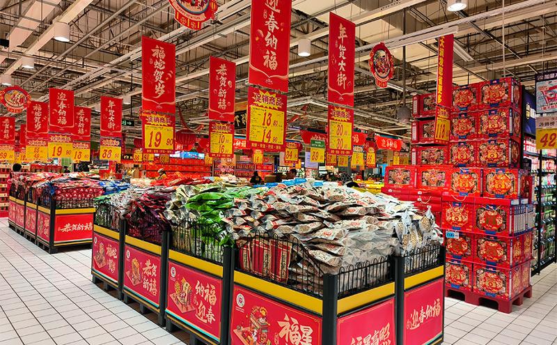 除了鄰里中心,園區(qū)可置辦年貨的大型商超還有很多。大潤(rùn)發(fā)金雞湖店同樣布置了年貨大街,對(duì)聯(lián)、剪紙、中國(guó)結(jié)、福字、等各種春節(jié)飾品,將商場(chǎng)妝點(diǎn)得年味十足。作為一年一度的春節(jié)購(gòu)物狂歡盛典,今年大潤(rùn)發(fā)匯聚了千余款精選年貨商品,從糧油、生鮮、干貨,到酒水、特產(chǎn),品類齊全,應(yīng)有盡有。