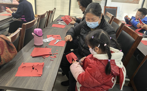 剪窗花這一古老而傳統的民間手工技藝,亦是春節不可或缺的風景線。東港家怡社區活動室里,居民們圍坐一堂,彩紙翻飛,剪刀舞動,一派其樂融融的景象。大家在志愿者老師的悉心指導下,翻轉對折、描邊裁剪,不一會兒,一個個寓意吉祥的窗花作品便躍然紙上,有的如國色天香的牡丹,有的似翩翩起舞的蝴蝶,還有的則像展翅高飛的鳥兒,形態各異,美不勝收,每一幅都寄托著辭舊迎新、接福納祥的新年祝福。居民們一邊展示自己的窗花作品,一邊分享著過年的習俗和家中的趣事,現場歡聲笑語不斷。有的居民還帶來了自己親手制作的年貨,與大家分享品嘗,傳遞著節日的喜悅與溫暖。