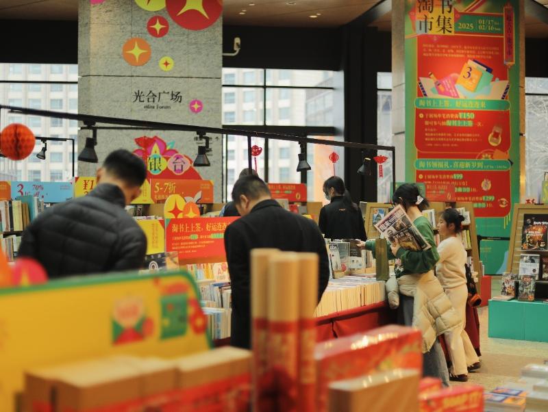 辭舊迎春,淘書納福。誠品淘書市集“年味書市”一片熙熙攘攘,市民游客們爭相體驗“好書福”盲盒、藏書票、淘書上上簽、日日好物閣等豐富活動,在這個春節與書同行、共赴新歲。此次展場精選10000+本進口繁體圖書,涵蓋文學藝術、人文社科、生活風格、商業趨勢等類型。“這里居然有包含官方授權劇照的精裝典藏版《小婦人》,對我來說很有收藏價值。”在書市淘到心儀書籍的林小姐十分開心。