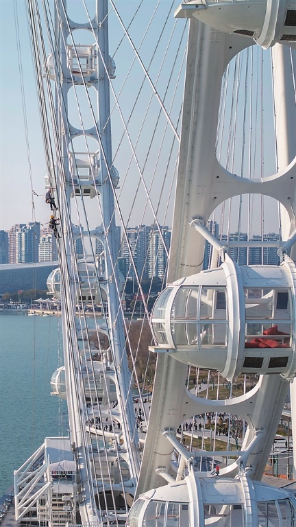 昨日,園區(qū)“蘇州之眼”摩天輪項目現(xiàn)場,工作人員正在抓緊進(jìn)行亮化工程作業(yè),為早日開業(yè)做準(zhǔn)備。