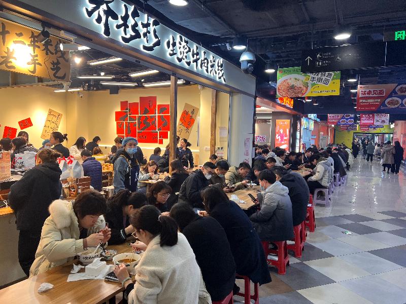 正在用餐的王女士邊吃邊贊:“30塊錢(qián)的預(yù)算能吃上這里大部分的美食,還能順帶買(mǎi)杯咖啡上樓喝,太劃算了。”在樓上寫(xiě)字樓上班的小陳表示:“下樓就能吃上熱乎飯,底下都能走通,也不用穿過(guò)馬路,很方便。忙了一上午,要好好吃飯犒勞一下自己,一碗米線(xiàn)下肚,渾身舒坦,又能繼續(xù)戰(zhàn)斗啦。園區(qū)能有這么實(shí)惠又好吃的地方,太懂我們打工人了!”