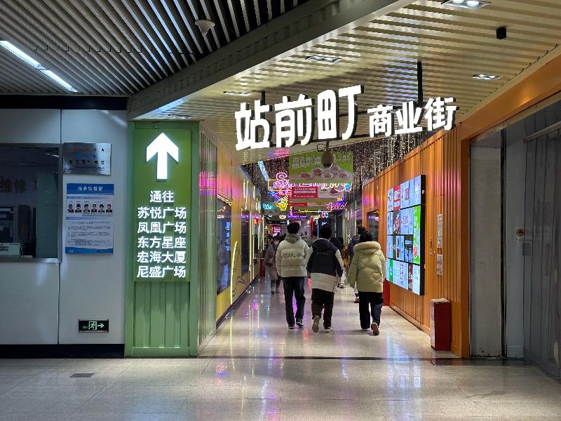 站前町位于軌道交通1號(hào)線(xiàn)星海廣場(chǎng)站,東入口直接連接星海廣場(chǎng)站站廳,西至星都街,可經(jīng)營(yíng)面積約8000平方米,其中餐飲占比約60%。街區(qū)巧妙利用軌道交通地下空間,打造了一片“輕消費(fèi)”街區(qū),完美滿(mǎn)足商務(wù)人士和周邊居民的日常消費(fèi)和飲食需求。這里不僅是美食天地,還通過(guò)地下通道與周邊商業(yè)綜合體相連,極大提升了出行效率。目前已有54家商鋪入駐,是蘇州軌道交通開(kāi)發(fā)的體量最大的地下商業(yè)街區(qū),實(shí)現(xiàn)了地鐵與商業(yè)的雙贏。