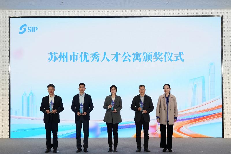 現場為優秀人才公寓項目頒獎。為進一步提升蘇州市人才公寓建設運營水平,助力打造人才友好型城市,蘇州市委人才工作領導小組辦公室依據公寓周邊環境、功能配套、居住品質、運營服務等核心指標開展綜合評審,全市共有24個項目被認定為“蘇州市優秀人才公寓”。園區南岸新地公寓、東延四季公寓、文華人才公寓、菁英公寓4個項目成功獲評。