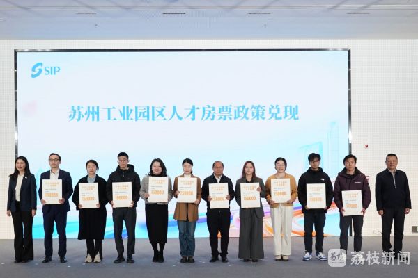 在購房方面,專科生、本科生、碩士生、博士生分別能獲得7萬元、10萬元、15萬元、25萬元的房票補貼,對符合條件的金雞湖科技創業領軍人才,給予最高200萬元購房補貼。大會現場,10位成功享受政策的青年人才代表現場領取房票。自今年1月實施以來,園區已累計發放房票138張,補貼金額1738萬元,合同總額4.9億元,圓了青年人才的“園區安家夢”。