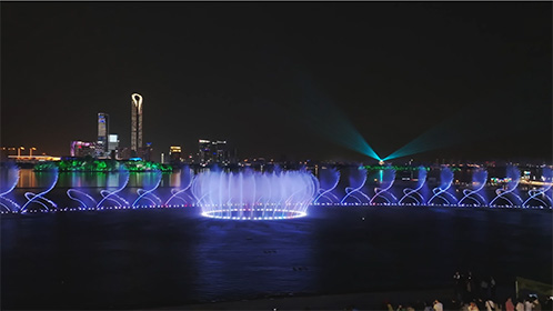 與“蘇州之眼”隔湖相望的,是同樣具有浪漫基因的金雞湖音樂(lè)噴泉。去年,金雞湖光影水秀體系整體完成升級(jí)改造,音樂(lè)噴泉的曲目編排、水形設(shè)計(jì)均進(jìn)行了更新。經(jīng)過(guò)重新編排的曲目既體現(xiàn)蘇州元素,又融入現(xiàn)代韻味,與園區(qū)多元包容的城市特質(zhì)相得益彰;噴泉水形設(shè)計(jì)則與音樂(lè)充分聯(lián)動(dòng),可呈現(xiàn)溫婉精致、恢弘壯觀等不同的視覺(jué)場(chǎng)景。游逛金雞湖,“蘇州之眼”×金雞湖音樂(lè)噴泉的奇妙組合,將讓游客擁有與眾不同的游玩體驗(yàn)。