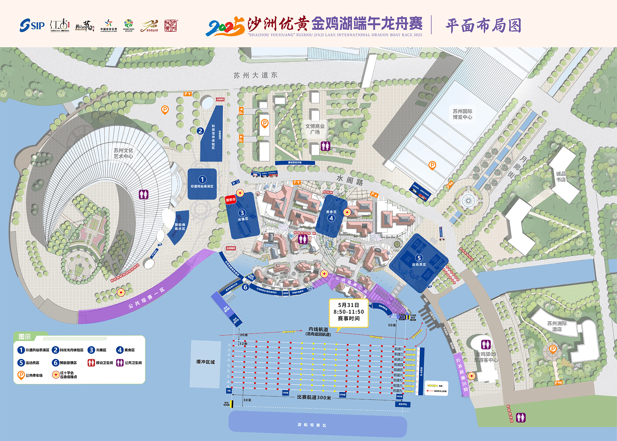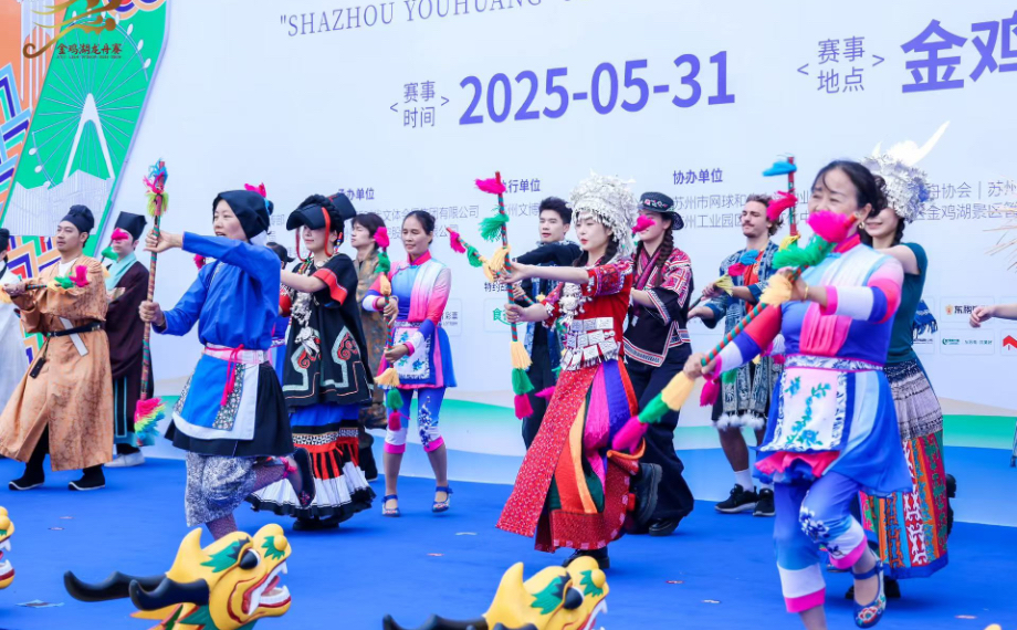 5月31日,2025沙洲優黃第十五屆金雞湖端午龍舟賽在月光碼頭鳴鑼開賽。咚!咚!咚!激昂鼓點如心跳,一艘艘龍舟瞬間化作離弦飛箭。選手們緊握船槳,以鼓點為沖鋒號,在碧波蕩漾的金雞湖面劃出一道道澎湃的弧線,整個金雞湖都跟著沸騰啦!本屆金雞湖端午龍舟賽由蘇州市委宣傳部、蘇州市體育局、蘇州工業園區管理委員會主辦,蘇州新時代文體會展集團有限公司、蘇州新建元控股集團有限公司承辦。本屆賽事共69支隊伍參賽,總參賽人數1502人,競賽組與邀請組雙線并行,既有專業隊伍的速度與激情,也有國際友人解鎖“龍舟新姿勢”,還有龍舟少年團的熱血登場,“龍舟精神”的多元魅力盡顯。吉祥喜慶的舞龍舞獅表演,拉開今日龍舟賽的序幕。金雞...