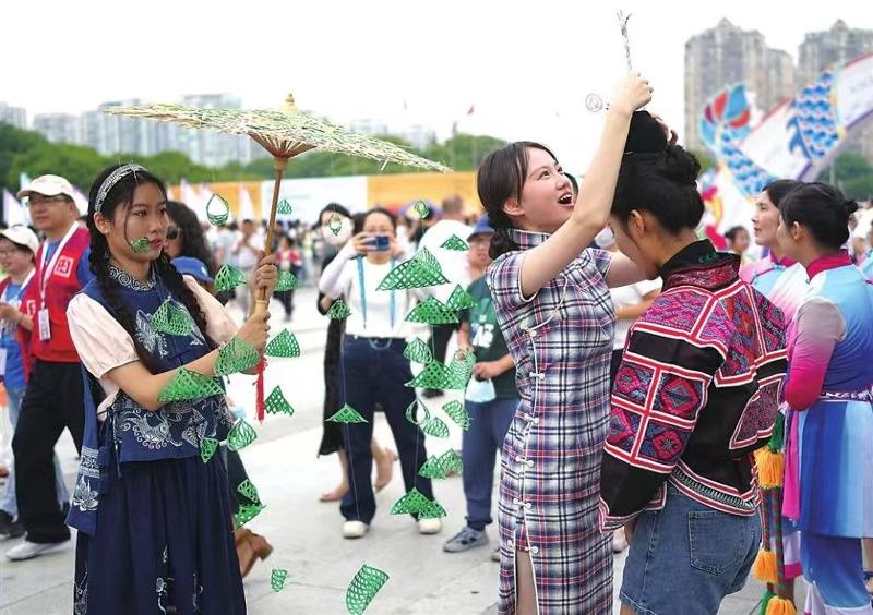 昨天,在金雞湖端午龍舟賽非遺市集上,以“經(jīng)緯千年·活力煥新”為主題的非遺服飾show驚艷全場(chǎng)。