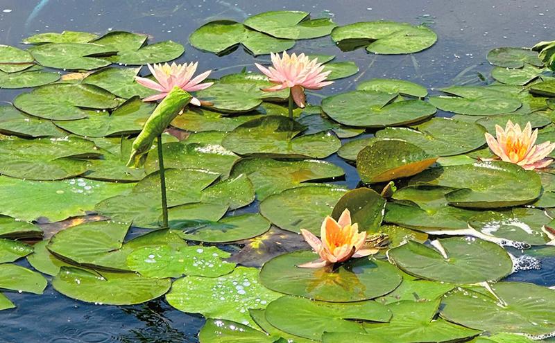 初夏時(shí)節(jié),微風(fēng)輕拂,環(huán)金雞湖步道蘇州文化藝術(shù)中心段,一朵朵睡蓮在晨光中蘇醒,正悠然綻放,將湖面裝點(diǎn)成一幅靈動(dòng)的生態(tài)畫卷。