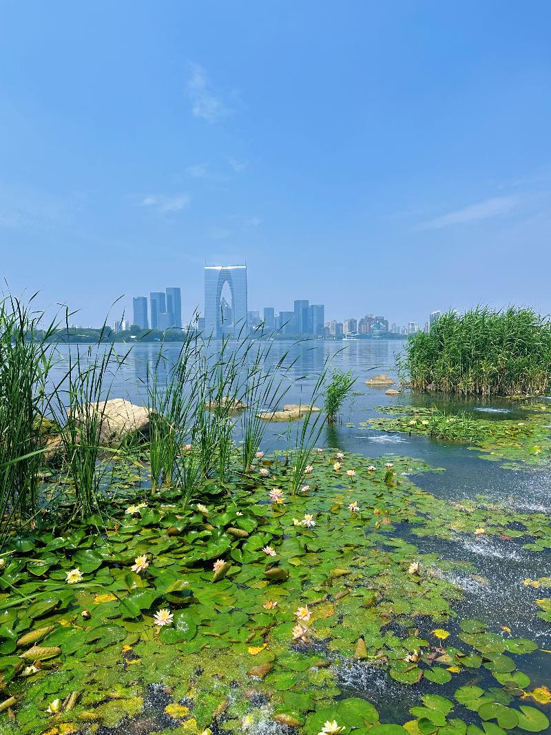 漫步在金雞湖畔,隨處可見市民游客的身影。大家爭相尋找與東方之門的最佳同框機(jī)位,將這古典雅致的湖濱風(fēng)光與現(xiàn)代建筑交融的美景定格。攝影愛好者馬先生興奮地說:“每年睡蓮盛開我都會(huì)來這拍照,和東方之門搭配在一起,怎么拍都別具韻味。再過段時(shí)間這里荷花盛放,又是另一番盛景。”