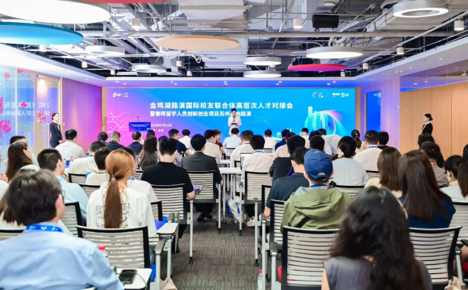 7月10日,2025第十七屆蘇州國際精英創業周園區分會場分項活動——金雞湖路演國際校友聯合體高層次人才對接會暨春暉留學人員創新創業項目蘇州基地路演在國際人才港舉辦。八大國際校友組織助陣全球引才,來自7個國家(地區)的9個海內外博士創業項目,聚焦人工智能、生物醫藥、高端制造等戰略新興領域,上演科技創新盛宴,實現“全球匯智”與園區產業發展需求的精準對接。