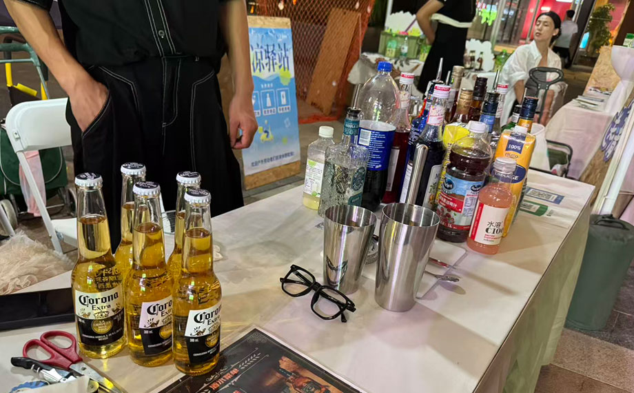 “進球啦,蘇州隊太棒了!”隨著蘇州球員一腳踢破泰州隊的大門,聚集在688藝術潮流廣場觀看“蘇超”的市民瞬間激動起來,周邊的市集商家也鼓起掌來。而此時,一杯應景的特調則成為不少球迷的慶祝方式。