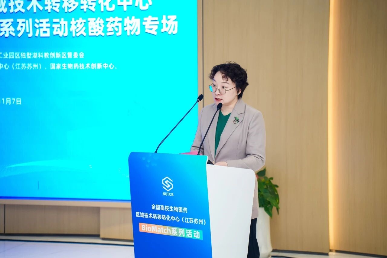 近日,全國高校生物醫(yī)藥區(qū)域技術(shù)轉(zhuǎn)移轉(zhuǎn)化中心(江蘇蘇州)(以下簡稱“蘇州生物醫(yī)藥分中心”)與國家生物藥技術(shù)創(chuàng)新中心、吉瑪基因、中科蘇州藥物研究院聯(lián)合主辦的BioMatch系列活動(dòng)核酸藥物專場圓滿落幕。本次活動(dòng)聚焦核酸藥物領(lǐng)域,通過現(xiàn)場推介、成果路演、專家點(diǎn)評(píng)等環(huán)節(jié),搭建起技術(shù)交流、項(xiàng)目對(duì)接與資源整合的高效平臺(tái),加速高校創(chuàng)新成果向現(xiàn)實(shí)生產(chǎn)力的轉(zhuǎn)化與落地。