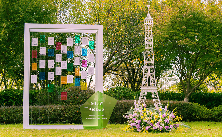 展覽區(qū)里,園區(qū)公共文化中心與中國人民大學中法學院攜手打造的“女性之聲”法語書信微展,用書法美學重構(gòu)法語語言魅力,將文字升華為視覺藝術(shù),呈現(xiàn)了別具韻律的線條之美。