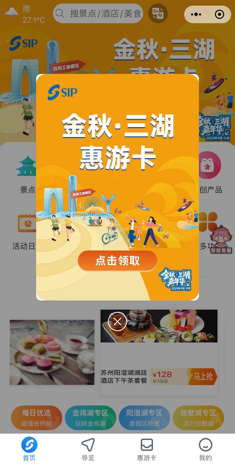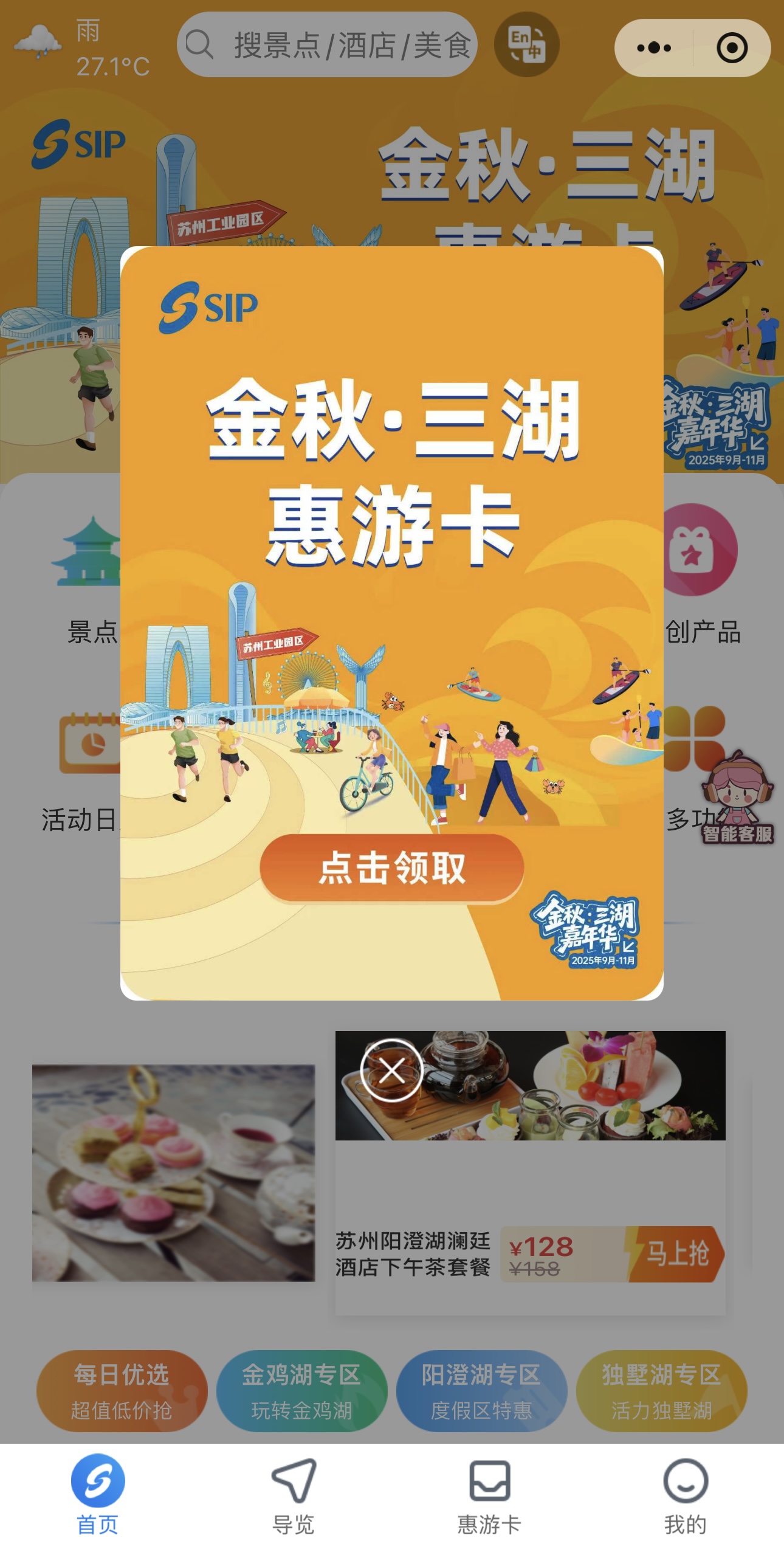 為讓市民游客“消費(fèi)更優(yōu)惠、參與更輕松”,活動期間推出一系列針對性惠民舉措,覆蓋酒店住宿、餐飲美食、休閑零售、文旅體驗(yàn)等多個(gè)領(lǐng)域。“金秋?三湖惠游卡”重磅升級發(fā)布,市民游客通過“惠游園區(qū)”平臺免費(fèi)領(lǐng)取后,可于小程序右下角“我的”—“我的卡包”中,快速查看。