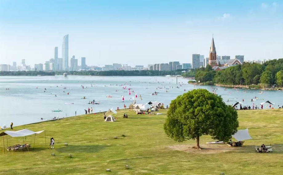 此外,在獨(dú)墅湖畔,靜謐藝術(shù)與科教氛圍共筑城市“慢空間”,為市民游客提供了另一種休閑選擇。白鷺園、獨(dú)墅湖教堂、月亮灣等景點(diǎn)構(gòu)成獨(dú)特風(fēng)景線,成為市民“微度假”的熱門選擇;草坪露營、湖畔騎行、水上槳板等綠色休閑方式廣受歡迎,吸引了眾多家庭前來享受假日的寧靜時(shí)光。