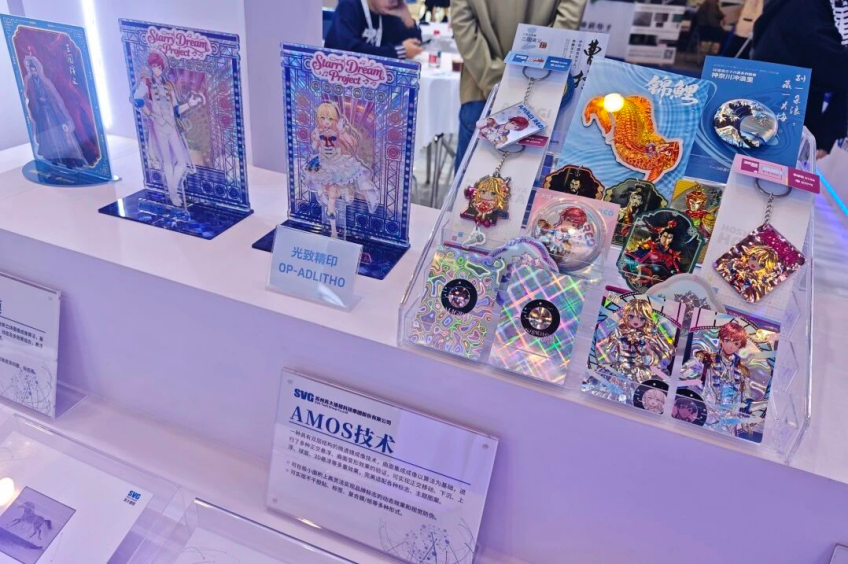 如何讓平平無奇的卡牌視覺上“立”起來?怎樣讓二維“吧唧”呈現發絲飄逸、絲帶飛揚的三維質感?蘇大維格的光致精印技術,讓這些都成為現實。