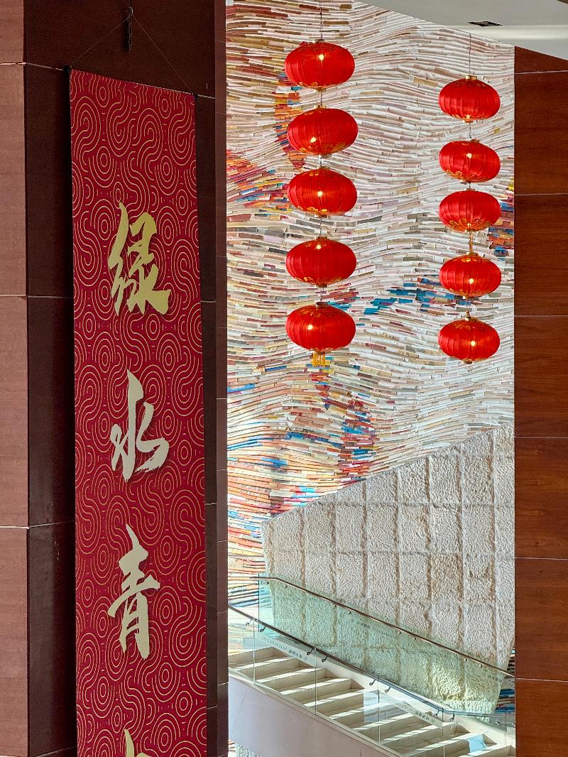 年味,不止于活動(dòng),更浸潤在空間與細(xì)節(jié)中。金雞湖大酒店大堂以《姑蘇繁華圖》迎賓,將賓客悄然引入江南意境;酒店整體設(shè)計(jì)融匯園林“借景”智慧,營造出自然與人文相映的沉浸場景。
