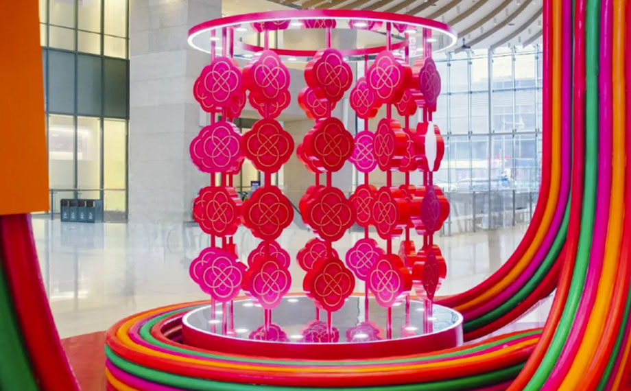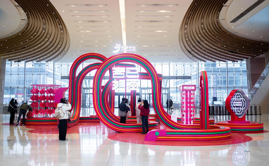 在蘇州中心商場(chǎng),被古人賦予美好寓意的中國(guó)結(jié)以靈蛇造型在一樓中庭驚艷亮相,帶來(lái)“靈蛇繞福,凝心啟運(yùn)”的新年祝福,靈蛇的體態(tài)蜿蜒流暢,與中國(guó)結(jié)的線條完美融合,形成了獨(dú)特的視覺美感。
