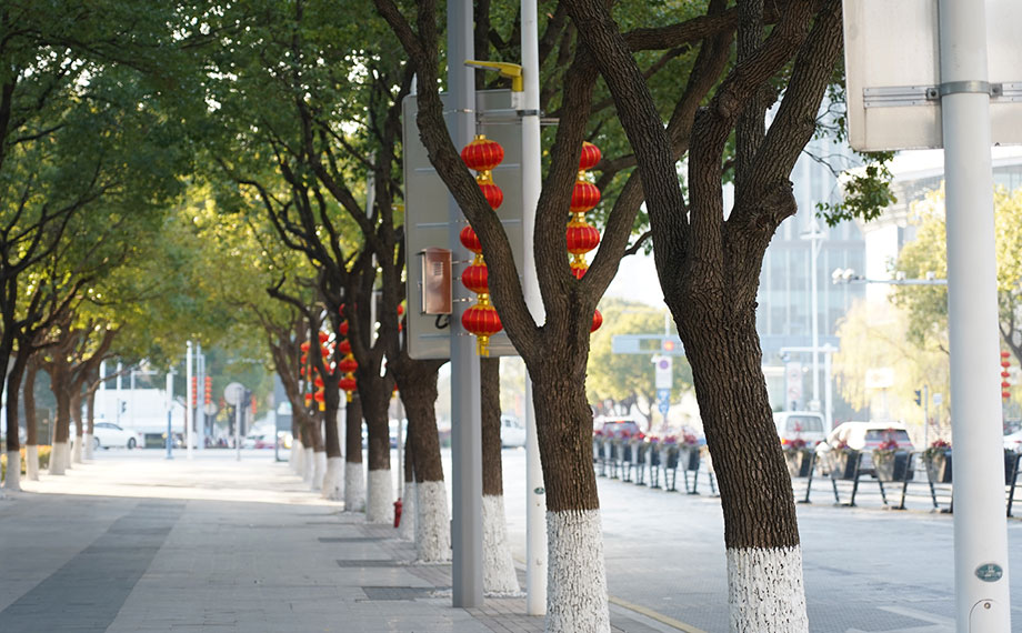 在蘇州大道、圓融環(huán)路等主干道旁,一盞盞大紅燈籠高高掛起,沐浴著冬日的暖陽(yáng),在微風(fēng)中輕輕搖曳,仿佛在向人們?cè)V說(shuō)著新年的故事。