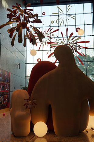 在誠(chéng)品書店北門,新春抱抱溫暖上線,新年煙花在上空絢爛綻放,為寒冷的冬日增添了一抹溫馨的色彩。巨大的抱抱玩偶矗立在書店的入口,張開著雙臂,仿佛在邀請(qǐng)每一位路過(guò)的行人前來(lái)?yè)肀В惺苓@份來(lái)自新春的溫暖與祝福。