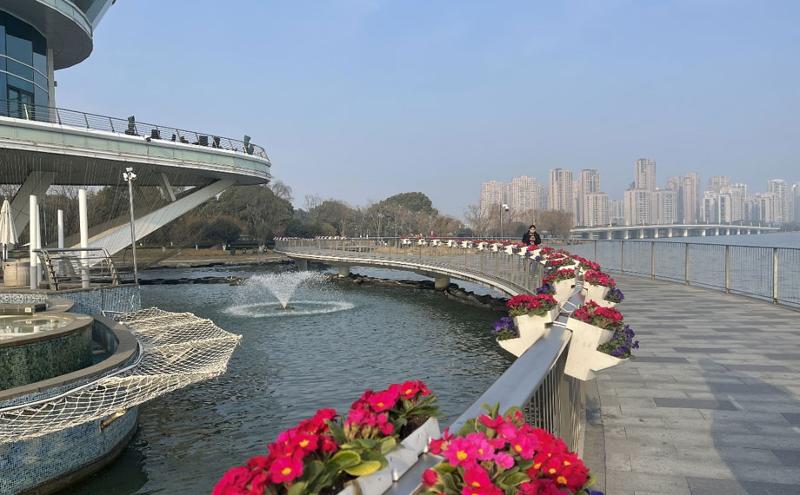 各色的角堇花箱呈陣列式間隔擺放,勾勒出城市彩色線條,用熱鬧喜慶的花卉美景點(diǎn)亮新春環(huán)境,拉滿春節(jié)氛圍感。